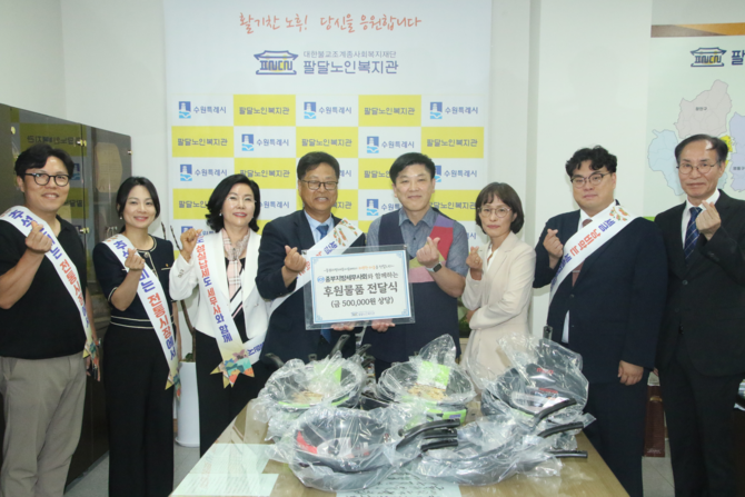 중부지방세무사회는 팔달문시장 상인회에 시장 운영 및 상인들의 위생환경개선을 위한 '지원용품(앞치마)'을 전달하며 따뜻한 나눔의 의미를 더했다.
