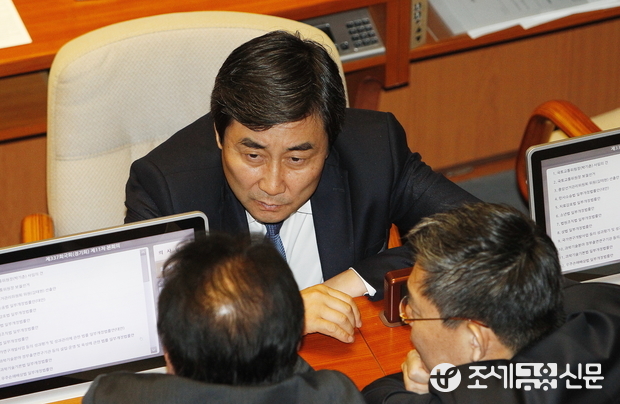 (조세금융신문=전한성 기자) 제337회 국회(정기회) 제11차 본회의가 12일 오후 개의된 가운데 새정치민주연합 이종걸(가운데) 원내대표가 민병두, 최재천 의원과 대화 나누고 있다.