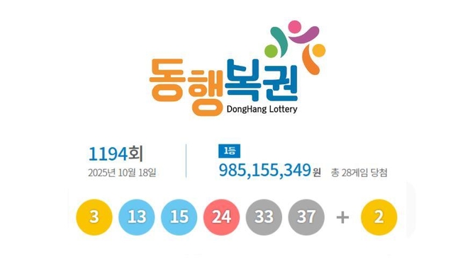 (조세금융신문=박청하 기자) 제1194회 로또복권 추첨에서 '3, 13, 15, 24, 33, 37'이 1등 당첨번호로 뽑혔다. 2등 보너스 번호는 '2'이다.