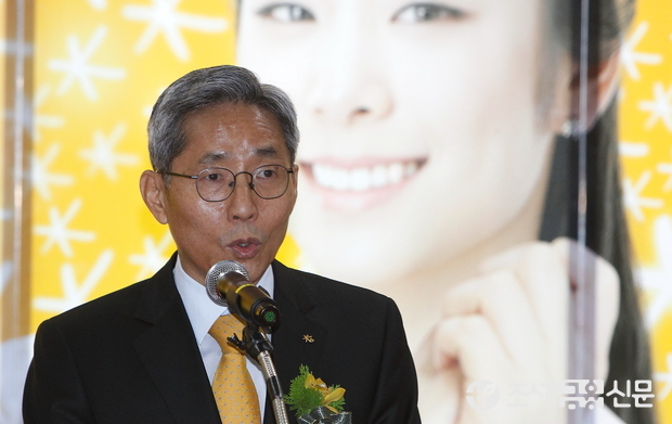 (조세금융신문=전한성 기자) '2015 KB 굿잡 우수기업 취업박람회'가 17일 오전 인천 연수구 송도컨벤시아에서 개막한 가운데 윤종규 KB국민은행장이 인사말을 하고 있다.