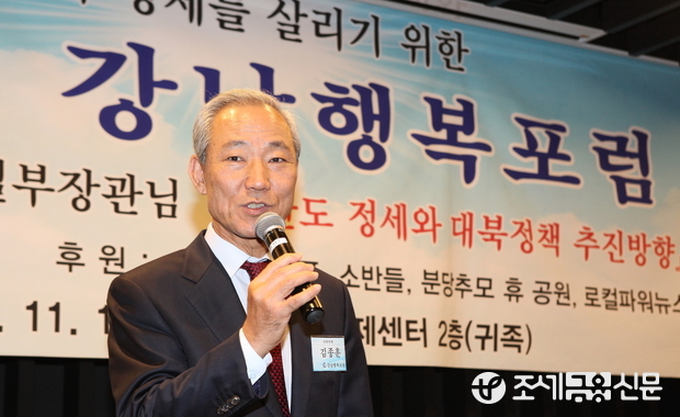(조세금융신문=전한성 기자) '제10차 강남행복포럼'이 18일 오전 서울 강남구 테헤란로 샹제리제센터에서 열린 가운데 새누리당 김종훈 의원이 축사를 하고 있다.
