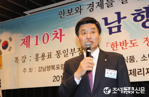 (조세금융신문=전한성 기자) '제10차 강남행복포럼'이 18일 오전 서울 강남구 테헤란로 샹제리제센터에서 열린 가운데 새누리당 심윤조 의원이 축사를 하고 있다.