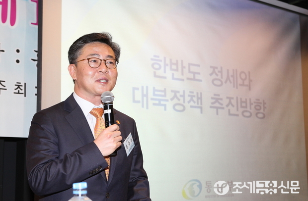 (조세금융신문=전한성 기자) '제10차 강남행복포럼'이 18일 오전 서울 강남구 테헤란로 샹제리제센터에서 열린 가운데 홍용표 통일부장관이 강사로 초청되 '한반도 정세와 대북정책 추진방향'이라는 주제로 특강을 하고 있다.