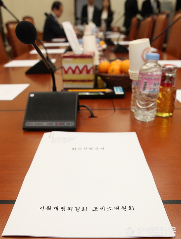 (조세금융신문=전한성 기자) 제337회국회(정기회) 제4차 조세소위원회가 18일 오전 서울 여의도 국회 기획재정위원회 소회의실에서 열린 가운데 회의장에 자료가 놓여있다.