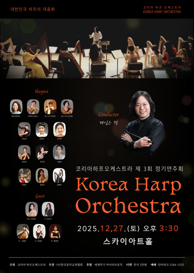 (조세금융신문=김지연 객원기자) 대한민국 하프 음악의 대중화에 꾸준히 앞장서 온 코리아하프오케스트라가 오는 12월 27일(토) 오후 3시 30분, 서울 강서구 스카이아트홀에서 제3회 정기연주회를 개최한다.
