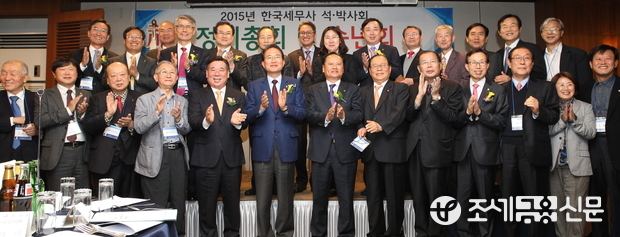 (조세금융신문=전한성 기자) '2015년 한국세무사 석·박사회 정기총회 및 송년회'가 18일 오후 서울 강남구 테헤란로 웨딩피에스타귀족에서 열린 가운데 내빈들이 기념촬영을 하고 있다.