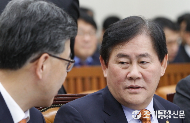 (조세금융신문=전한성 기자) 제337회국회(정기회) 제2차 기획재정위원회의 전체회의가 19일 오후 서울 여의도 국회에서 열린 가운데 최경환 경제부총리 겸 기획재정부 장관이 송언석 기획재정부 제2차관과 대화 나누고 있다.