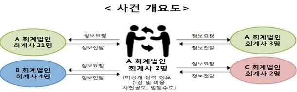 서울남부지검 금융조사제2부(부장검사 이진동)와 금융위 자본시장조사단(단장 김홍식)은 대형 회계법인 소속 회계사들이 기업회계 감사과정에서 알게 된 미공개 실적정보를 누설하고, 이를 이용하여 주식 거래를 한 ‘금융 전문 직역의 구조적 비리’에 대해 집중 수사하여 회계사 32명을 적발했다고 밝혔다.