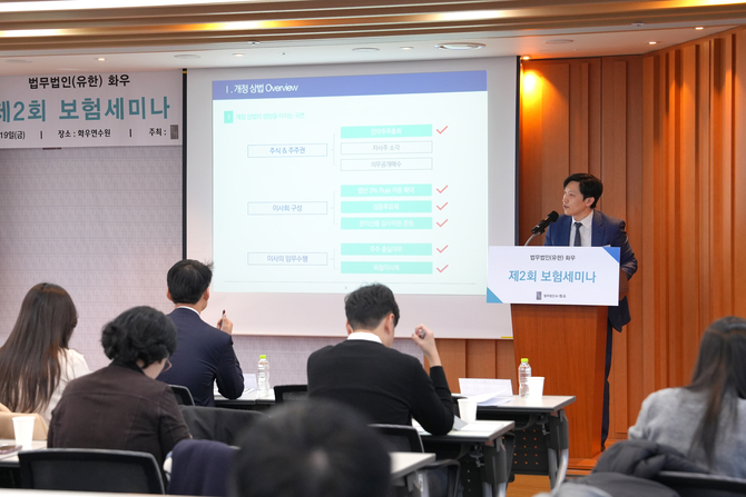 이러한 변화에 대응하기 위해 마련한 이번 세미나는 화우 금융그룹 보험팀이 그간 축적해 온 규제 분석 역량과 실무 경험을 바탕으로 진행됐다.