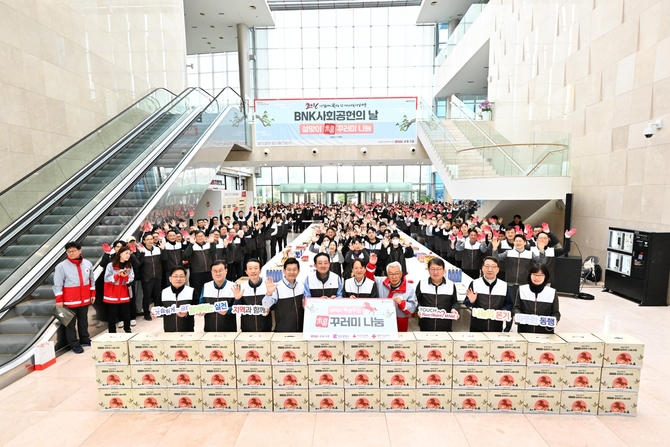 (조세금융신문=송기현 기자) BNK금융그룹은 17일 부산은행 본점, 경남 창원축구센터 체육관, 울산시의회 시민홀에서 빈대인 회장과 김성주 부산은행장, 김태한 경남은행장을 비롯한 전체 계열사 임직원 1천여명이 참여한 가운데 새해 첫 'BNK 사회공헌의 날' 행사를 개최했다고 밝혔다.