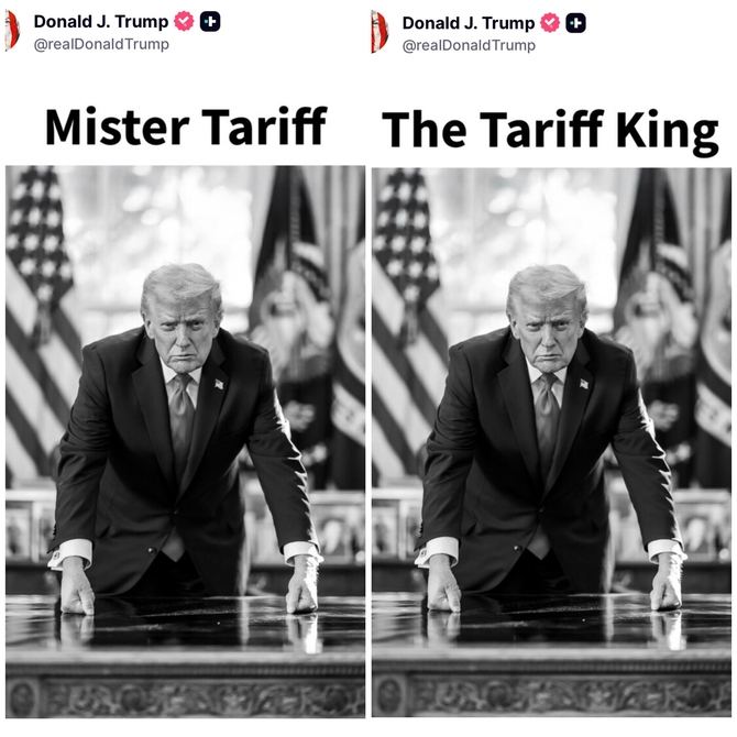 (조세금융신문=최주현 기자) 트럼프 미국 대통령이 소셜미디어에 "관세 왕"(The Tariff King), "미스터 관세"(Mister Tariff)라는 문구가 담긴 본인 사진을 올려 눈길을 끈다.