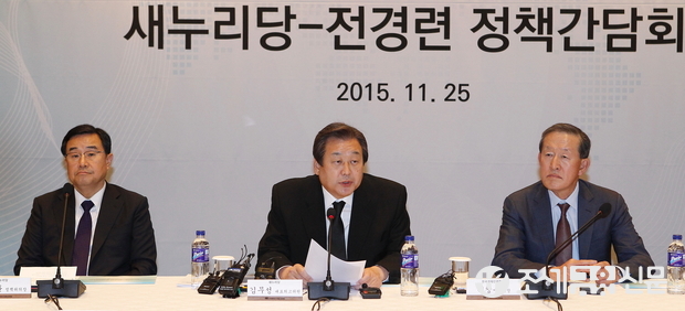 (조세금융신문=전한성 기자) '새누리당-전경련 정책간담회'가 25일 오후 서울 여의도 전경련 컨퍼런스센터에서 열린 가운데 새누리당 김무성 대표가 모두발언을 하고 있다.