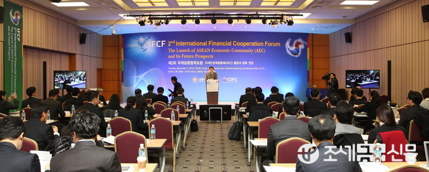 (조세금융신문=전한성 기자) '제2회 국제금융협력포럼 - 아세안경제공동체(AEC) 출범과 향후 전망'이 1일 오전 서울 중구 명동 은행회관에서 열린 가운데 김학균 금융위원회 상임위원이 환영사를 하고 있다.