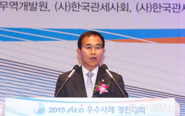 (조세금융신문=전한성 기자) 관세청이 주최하고 (사)한국AEO진흥협회가 주관하는 '2015 AEO 우수사례 경진대회'가 1일 오후 서울 여의도 중소기업중앙회에서 열린 가운데 김낙회 관세청자이 개회사를 하고 있다.