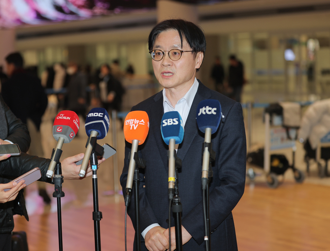 김정관 산업통상부 장관은 8일 미국 방문을 마치고 귀국하면서 기자들을 만나 "하워드 러트닉 미 상무부 장관을 만나 다음 주에 있을 우리 국회의 법 통과와 관련해 설명했고, 거기에 대해 미국에서 아주 높이 평가했고, 고맙다는 반응을 보였다"며 이같이 밝혔다.