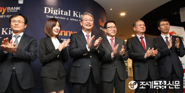 (조세금융신문=전한성 기자) 신한은행이 2일 오전 서울 중구 신한은행 본점에서 비대면 실명확인을 적용한 써니뱅크와 디지털 키오스크를 선보이고 대고객 서비스를 시작한 가운데 내빈들이 기념촬영을 하고 있다.
