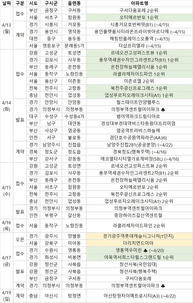◇ 이번 주 주요 청약 단지
