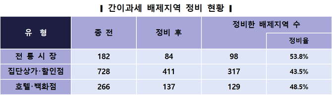 국세청은 실태확인을 통해 전통시장, 집단상가, 할인점, 호텔 및 백화점 1176개 중 544개(46.3%)에 간이과세 적용을 허용했다.