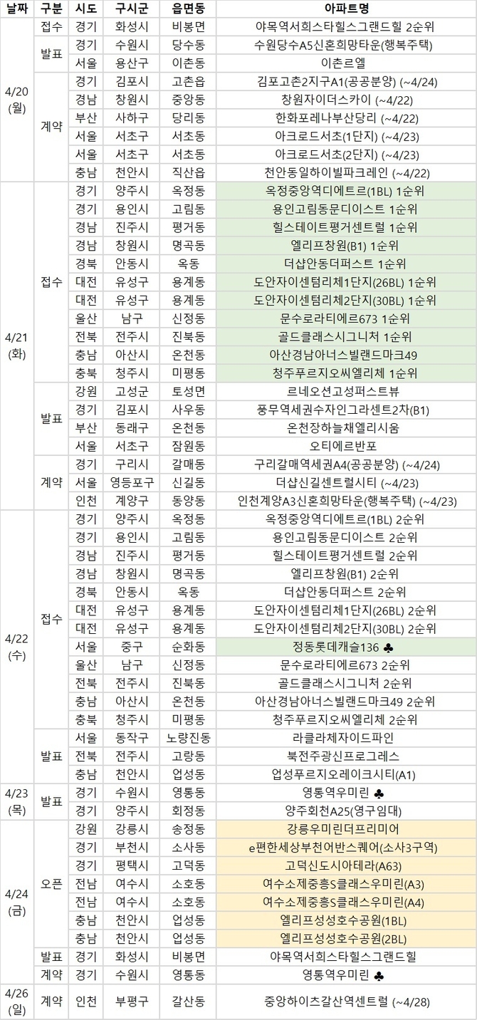 ◇ 이번 주 주요 청약 단지