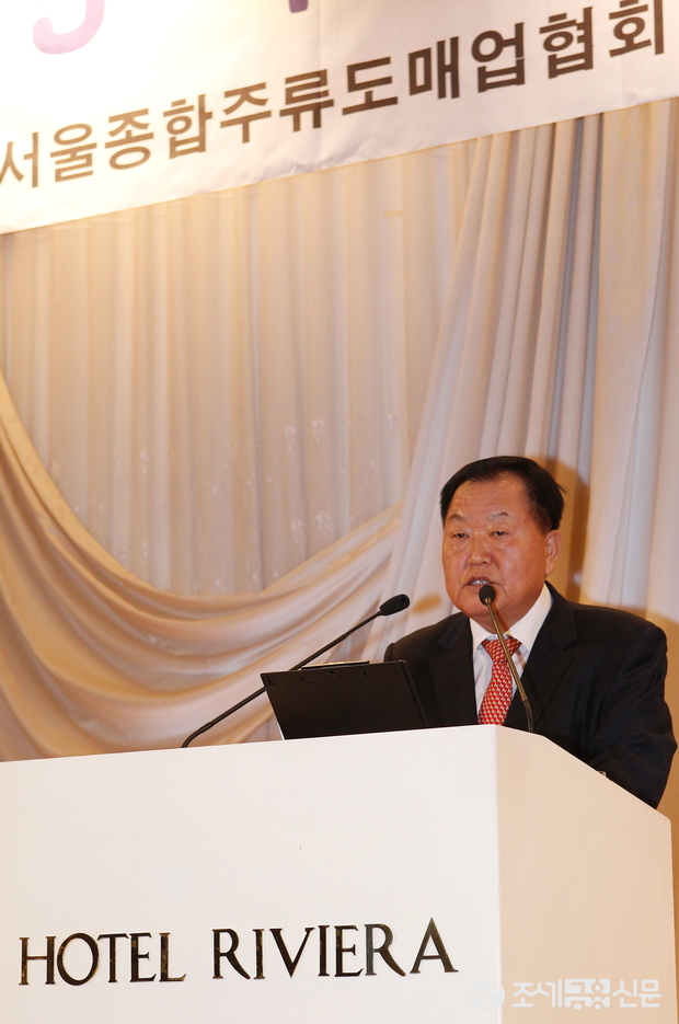(조세금융신문=전한성 기자) '서울종합주류도매업협회 - 2015 회원사 원로간담회'가 7일 오전 서울 강남구 청담동 리베라호텔에서 열린 가운데 박찬중 협회장이 개회사를 하고 있다.