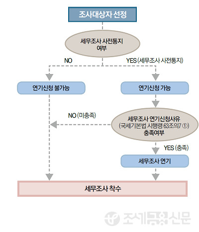 세무조사의 연기신청 가능자 → 「세무조사 사전통지서」를 교부받은 납세자