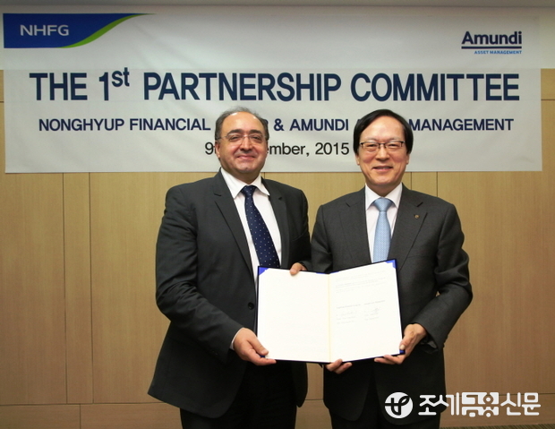 농협금융과 Amundi는 작년 12월 체결한 양사간의 MOU 진행 사항에 대해 ▲단독대표이사제도 도입(8.1) ▲무의결권주 발행(10.30) ▲Amundi 전문가 파견(9월) ▲대표펀드 Allset 출시(11월 현재 6,800억원 판매) 등 순조롭게 진행되고 있다고 평가하고 앞으로의 협력 방안을 집중적으로 모색 하였다.