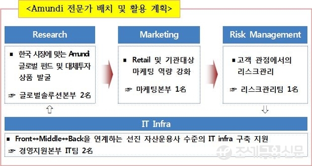 농협금융은 Amundi 파견 전문가를 교두보로 활용, Amundi의 선진기술 이전 수준을 넘어 NH-CA자산운용의 중장기 자산으로 내재화하여 경쟁력을 끌어 올린다는 복안이다.