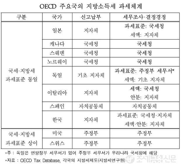 실제로 일본, 캐나다 등 국세와 지방소득세의 과세표준이 동일한 국가들은 지방정부가 과세표준에 대해 세무조사를 하지 않고 있다. 미국의 경우 주정부가 세무조사를 하고 있으나, 이는 주마다 과세표준이 달라 별도로 확인해야 할 필요가 있기 때문이다.