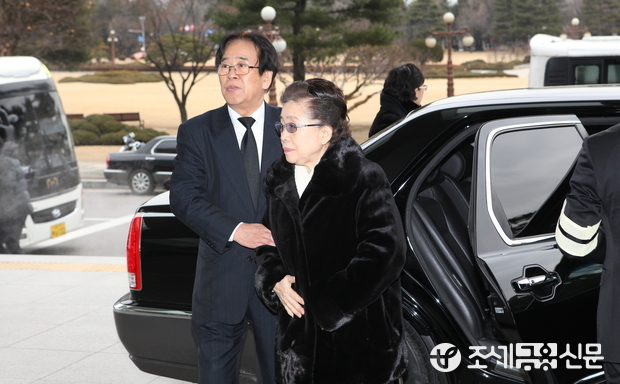 (조세금융신문=전한성 기자) 고(故) 이만섭 전 국회의장의 국회장 영결식이 18일 오전 서울 여의도 국회 의원회관에서 엄수된 가운데 한윤복 여사가 유족의 부축을 받으며 차에서 내리고 있다.