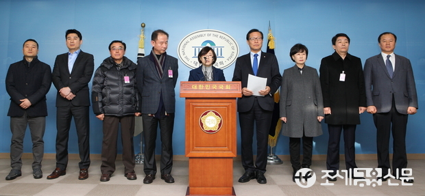 (조세금융신문=전한성 기자) 18일 오전 서울 여의도 국회 정론관에서 새정치민주연합을 탈당한 문병호 의원과 당 노동위원회 부위원장단이 안철수 전 공동대표를 지지하며 탈당 기자회견을 개최한 가운데 김지희 부위원장이 기자회견문을 낭독하고 있다.
