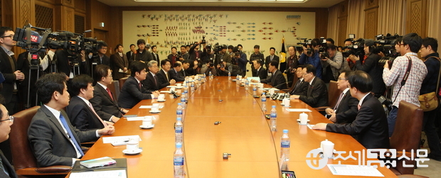 (조세금융신문=전한성 기자) 국회의장 주재 쟁점법안 관련 회의가 22일 오전 서울 여의도 국회 접견실에서 열린 가운데 정의화 국회의장이 모두발언을 하고 있다.