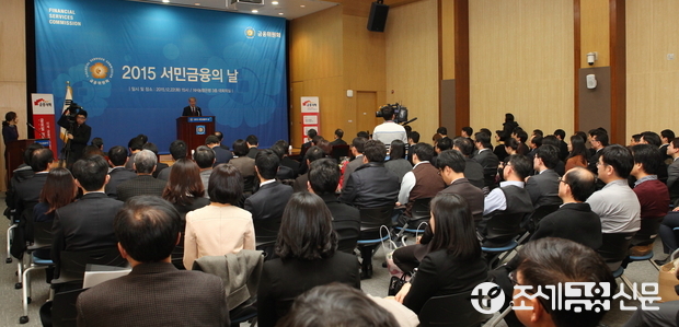 (조세금융신문=전한성 기자) '2015 서민금융의 날 시상식'이 22일 오후 서울 중구 NH농협은행 본점에서 열린 가운데 임종룡 금융위원장이 축사를 하고 있다.