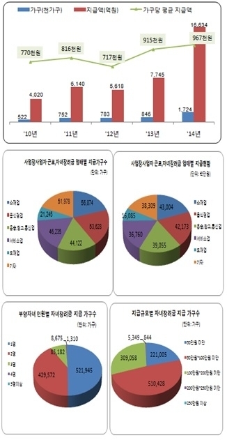 또 가구당 평균지급액은 96만7천원으로 전년도 91만5천원에 비해 5.7% 증가했다.