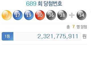 (조세금융신문=김태효 기자) 지난 13일 실시된 제 689회 나눔로또 추첨결과 1등 당첨번호는 7, 17, 19, 30, 36, 38이다. 2등 보너스번호는 34번이다.