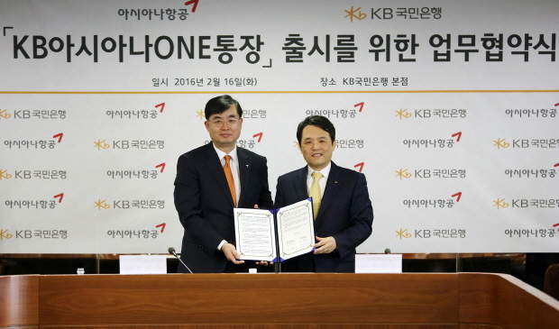 (조세금융신문=나홍선 기자) KB국민은행(은행장 윤종규)은 16일 여의도 세우빌딩에서 아시아나항공과 신상품 개발을 위한 업무협약을 체결했다고 밝혔다.