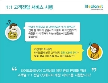 (조세금융신문=김사선 기자) 인터넷 전업 생명보험사 교보라이프플래닛생명보험(대표이사 이학상, 이하 '라이프플래닛')은 가입 고객을 대상으로 'CS(Customer Service)매니저 1:1 고객전담제'를 실시한다고 7일 밝혔다.
