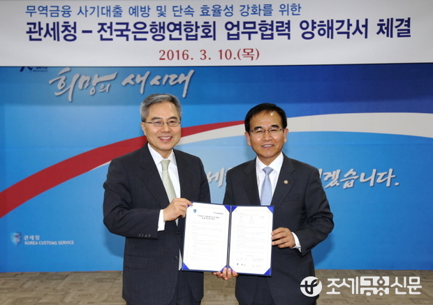 (조세금융신문=나홍선 기자) 관세청과 은행연합회는 3월 10일 서울본부세관 대회의실에서 무역금융사기의 사전 예방과 단속 효율성 제고를 통한 외환거래 질서 확립을 위한 상호 협력 강화를 내용으로 하는 업무협약(MOU)을 체결했다.