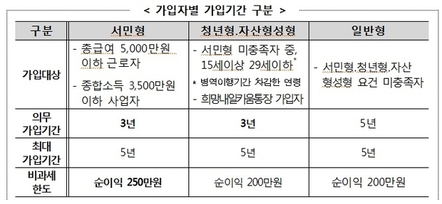 세제혜택을 받기 위해서는 가입자에 따라 3~5년의 의무 가입기간이 필요하다.