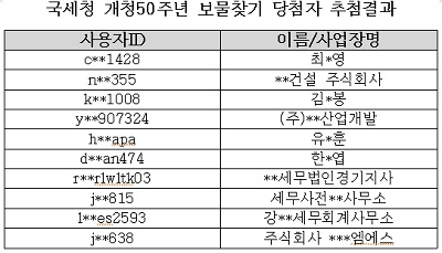 당첨자 선정은 이벤트 참여자를 대상으로 무작위 전산추첨을 실시했으며 추첨은 김봉래 국세청 차장을 비롯하여 국·과장 8명이 참여했다.