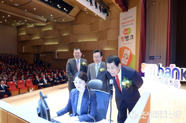 BNK금융은 28일 오전 부산은행 본점(부산 문현금융단지내 소재) 대강당에서 성세환 BNK금융그룹 회장과 서병수 부산시장, 황각규 롯데그룹 정책본부 사장 및 관계자 등 약 500여명이 참석한 가운데 ‘썸뱅크’ 출범식을 가지고 비대면 실명인증을 통한 계좌개설과 지문인식 간편 로그인, 롯데 L.Point를 활용한 적금 불입 등 썸뱅크의 편리하고 다양한 기능을 직접 시현했다.