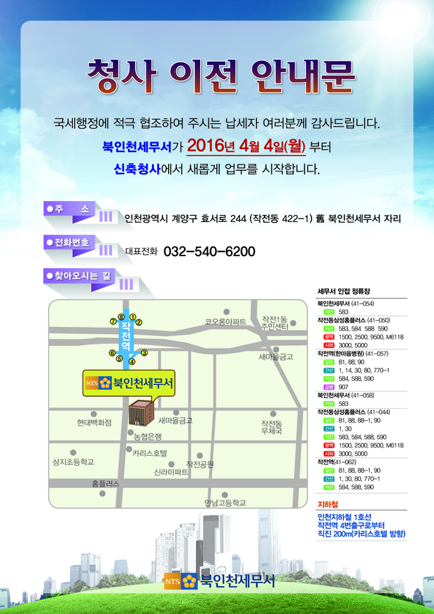 한편 북인천세무서의 대표전화는 032-540-6200으로 이전과 동일하다.