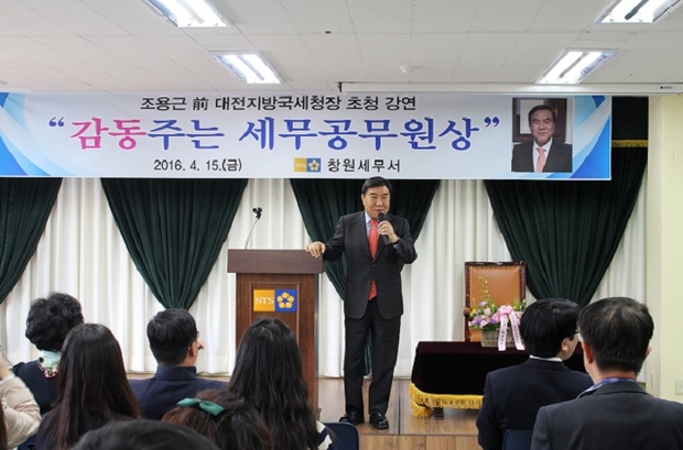(조세금융신문=양학섭 기자)창원세무서(서장 유세영)는 지난 15일 오전 10시 조용근(전 대전국세청장) 천안함재단 이사장을 초청하여 ‘감동주는 세무공무원상’이라는 주제로 명사특강을 실시했다고 18일 밝혔다.