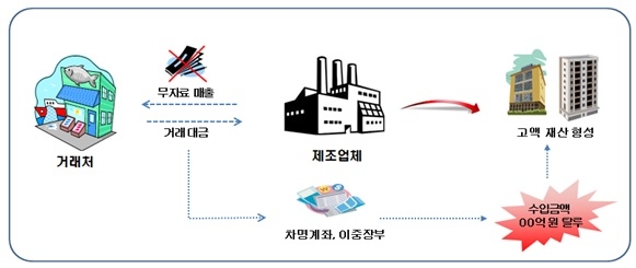 ○○○는 후발 식품 제조업자로 저가 및 무자료 매출을 통한 공격적인 영업활동으로 사업을 성장 시켰으나, 제품을 무자료로 매출하고 거래대금을 직원과 친인척 명의 차명계좌로 입금받아 관리하며 신고를 위해 별도의 장부를 작성‧보관하는 방법으로 수입금액을 신고누락했다.