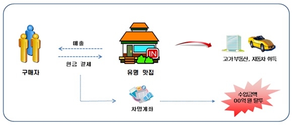 ◆[유명 음식점]낮은 단가의 현금수입 대부분을 신고누락하고 일가족이 부동산 위주의 재산을 증식한 유명 음식점.