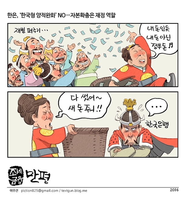[조세금융 만평]'한국형 양적완화' 정부 압박에 韓銀·야권 손사래
