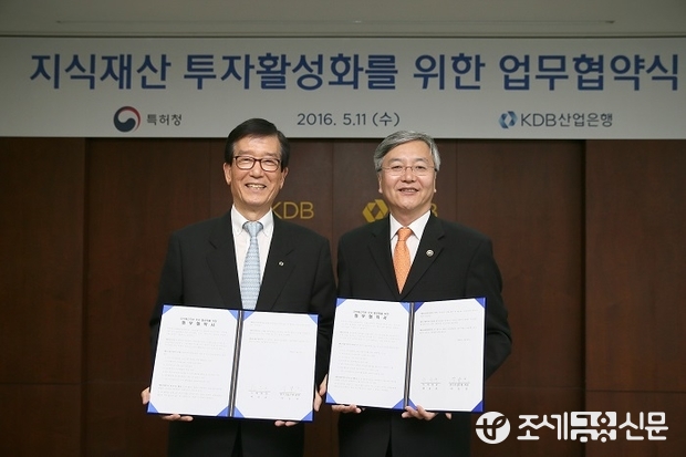 (조세금융신문=양학섭 기자)산업은행과 특허청은 11일 여의도 산업은행 본점에서 이동걸 산업은행 회장과 최동규 특허청장이 참석한 가운데 '지식재산 투자활성화를 위한 업무 협약식'을 갖고, 성장가능성이 높은 우수 특허 보유 기업에 대한 투자를 본격 시행하기로 합의했다.