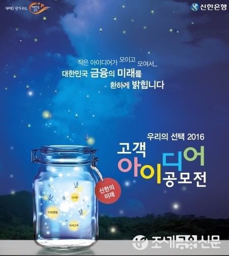 (조세금융신문=양학섭 기자)신한은행은 고객과의 쌍방향 소통을 통한 고객 지향적인 상품 개발을 위해 ‘우리의 선택! 2016 고객 아이디어 공모전’을 5월 16일(월)부터 7월15일(금)까지 시행한다고 밝혔다.