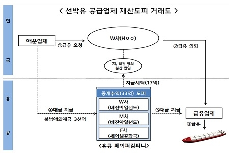 H씨는 W사가 국내에서 영위하고 있는 선박유 공급 중개업을 마치 해외에서 거래가 이루어진 것처럼 위장하기 위해 영국령 버진아일랜드 등에 4개의 페이퍼 컴퍼니를 세웠다.