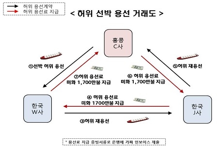 또한, W사는 가공매출을 일으킬 목적으로 홍콩 페이퍼컴퍼니와 허위로 선박 용선계약을 맺고 용선료 미화 1,700만불(한화 180억원)을 국외로 송금했다.
