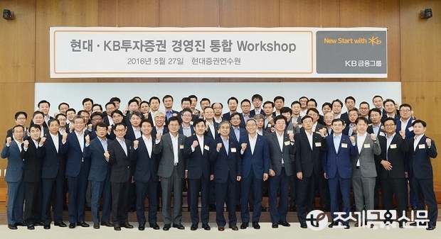 현대·KB투자증권은 지난 27일 현대증권 연수원에서 양사 경영진이 함께 참여한 통합 워크숍을 개최했다. 이날 워크숍에는 윤종규 회장과 지주 임원 등 60여 명이 함께했다.